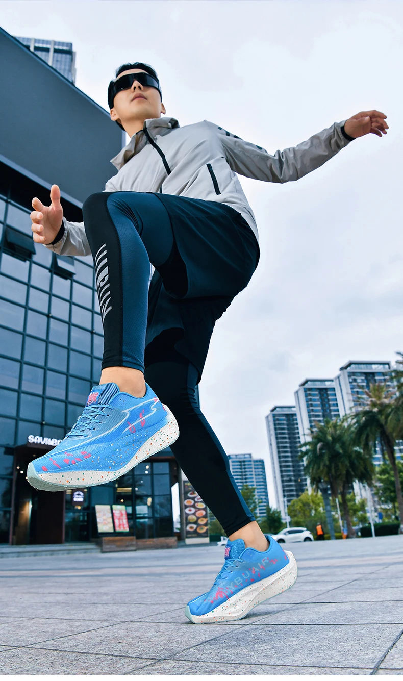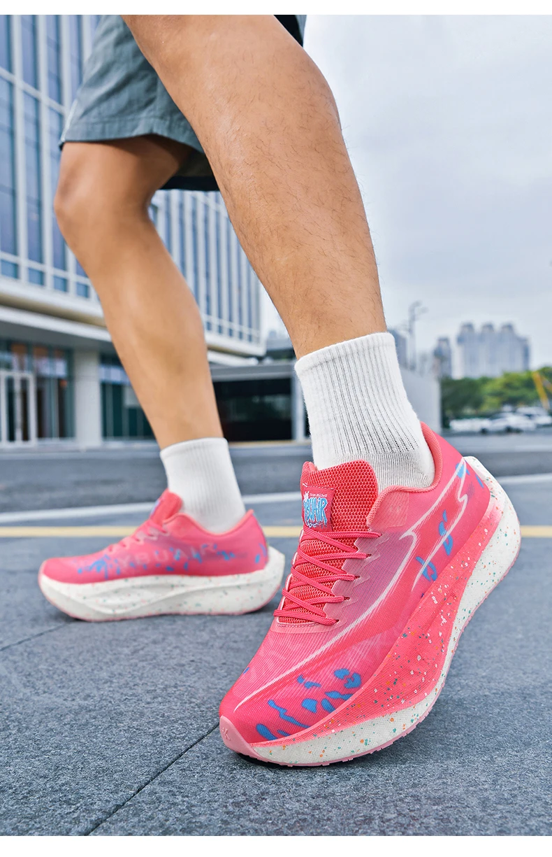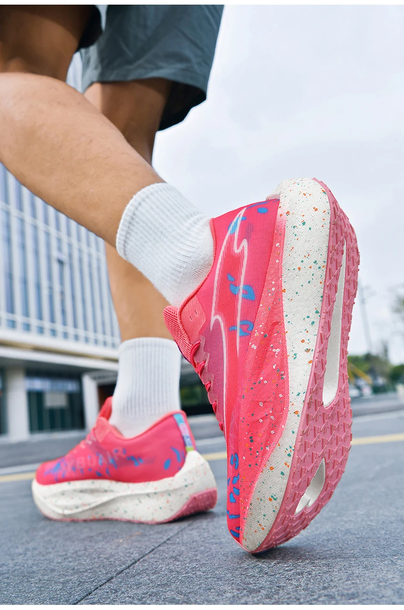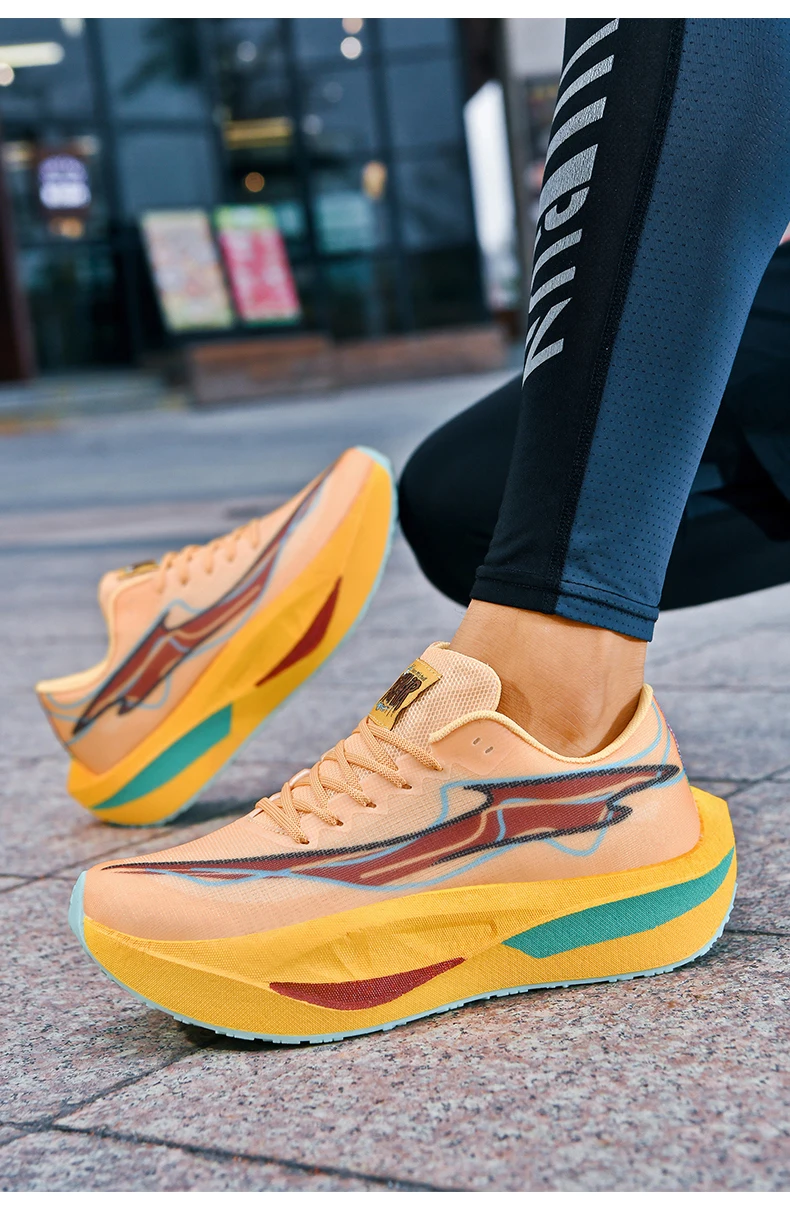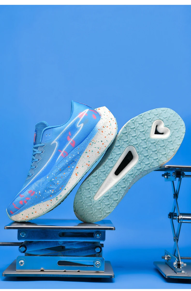 Placa de Carbono Dinâmica: Uma estrutura rígida integrada ao solado que funciona como uma mola, transferindo a energia do impacto em propulsão para frente, reduzindo o esforço muscular.